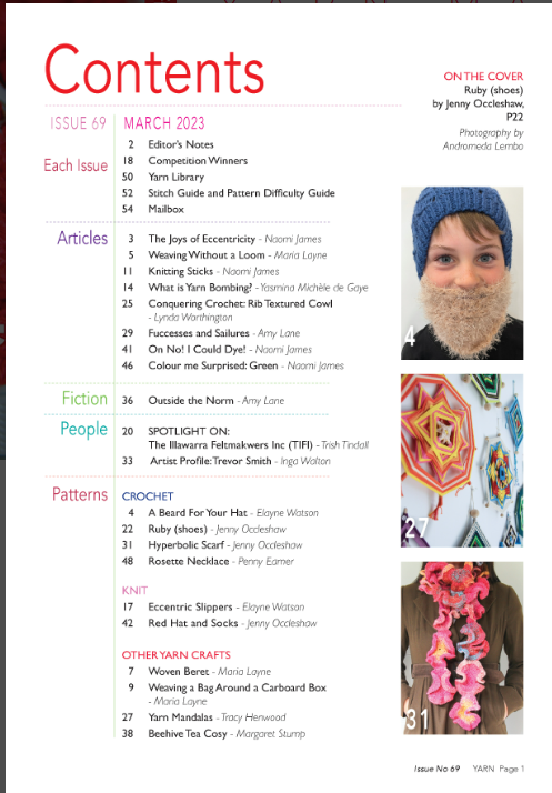 You will find knitting, crochet, felting, spinning, weaving, travel, and so much more in this magazine. Having begun in Adelaide, Yarn is still an Australian magazine, created here in Australia, and read worldwide.