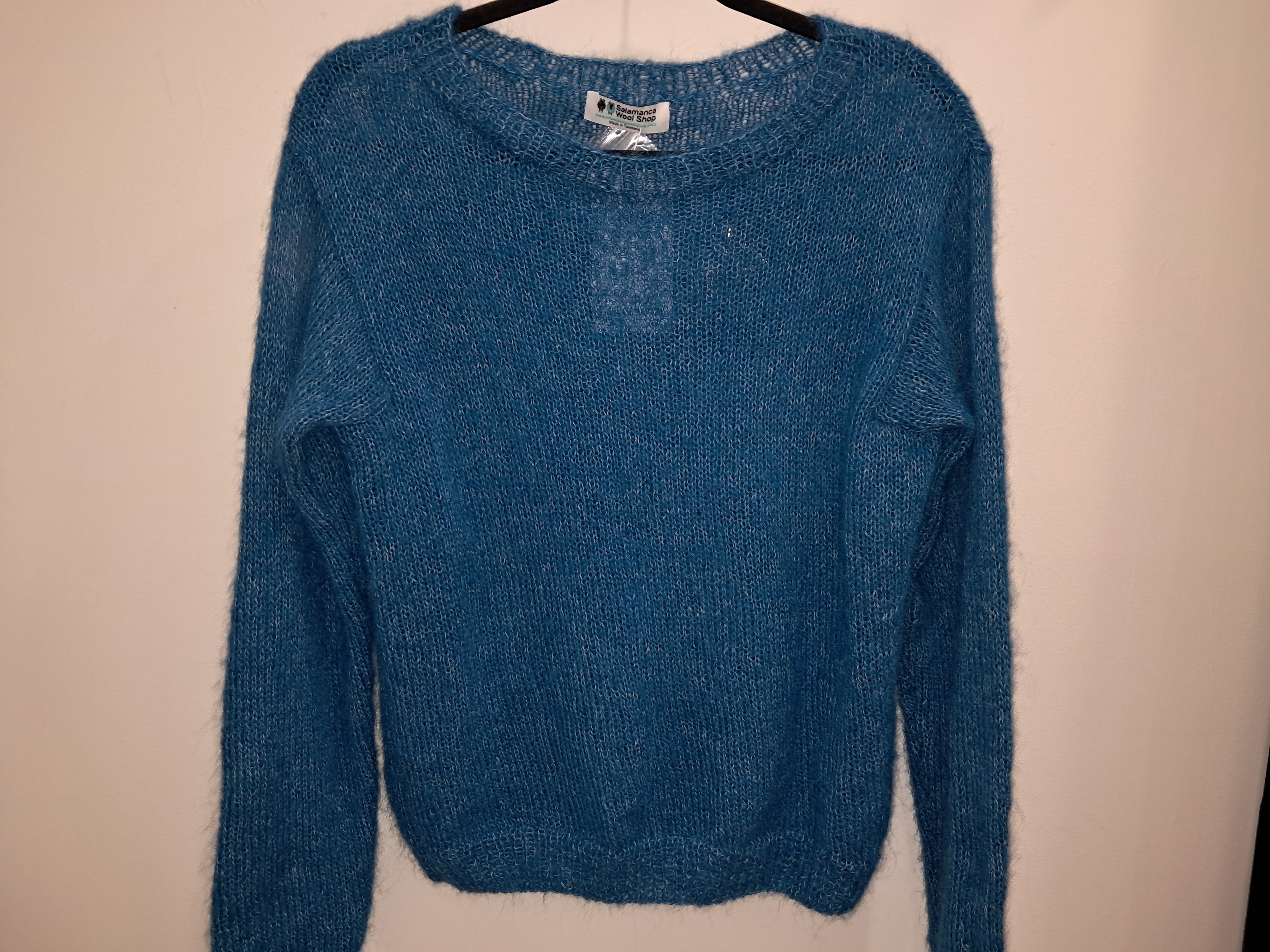 Hand knit in Algasoie 70% alpaca/30% silk yarn, a lovely soft sweater for everyday wear. Size M, to fit bust 95cm.