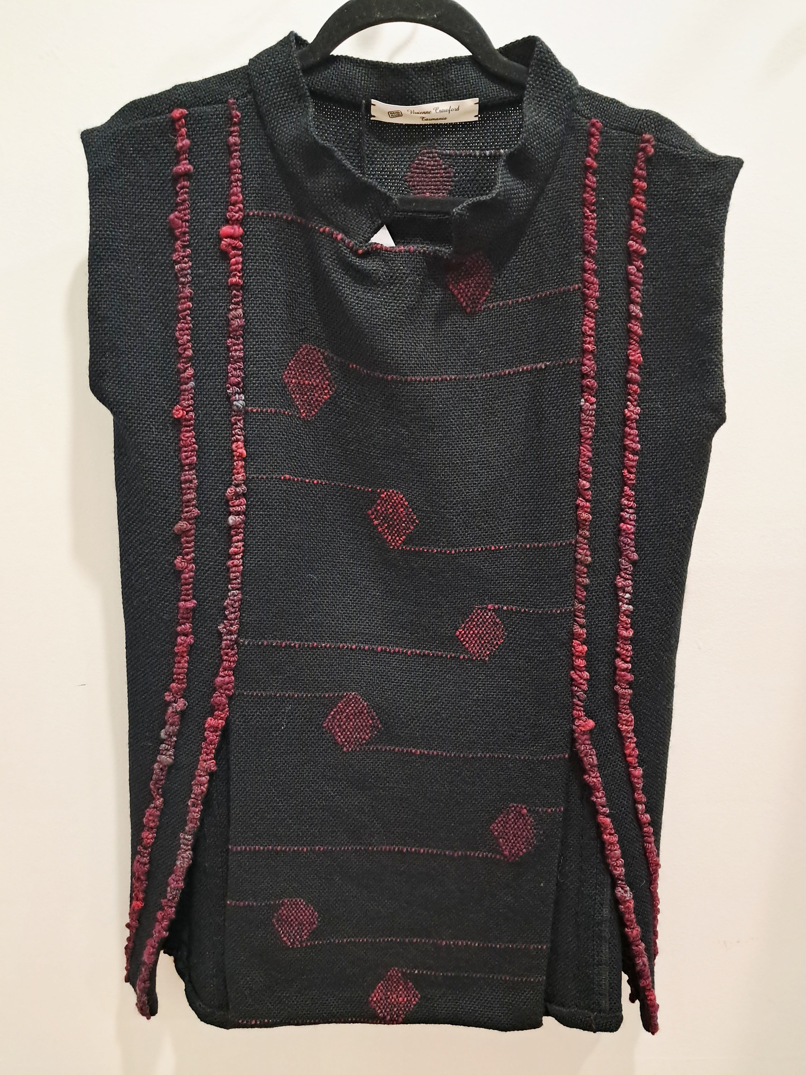 A stunning hand woven dress from local maker Vivienne Crawford, with handspun wool inlays and split hem. Size 8-10, hand wash only.