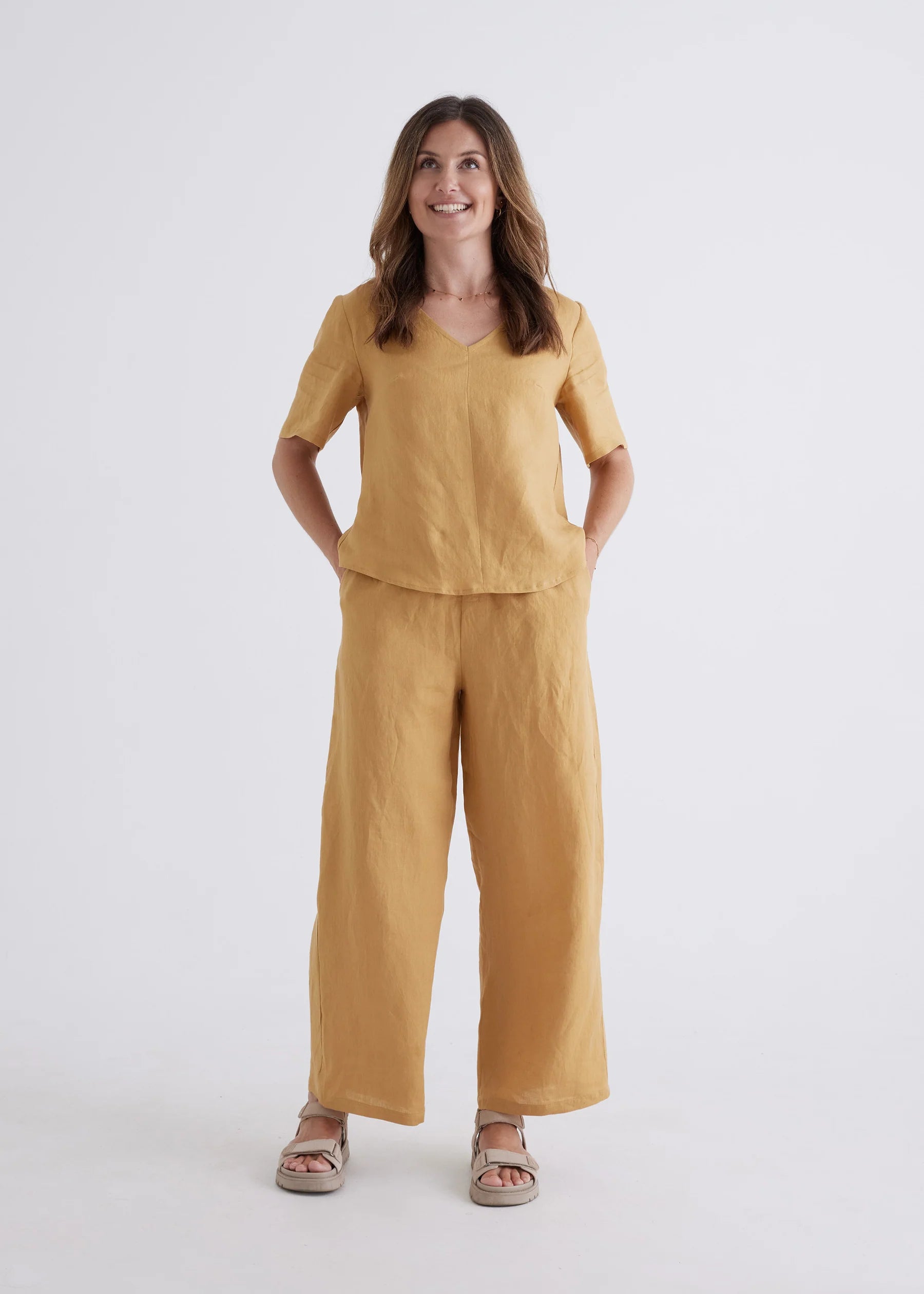 The Zara Pants are a relaxed everyday staple made in pre-shrunk linen. Cut with a loose fit and slightly cropped length, they feature a comfortable mid-rise elastic waistband and practical side pockets. Easy to style and even easier to wear, they’re the kind of pants you’ll live in all season long.