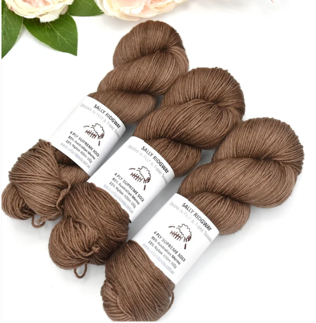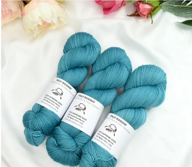 Sally Ridgway's sock yarns are cruelty free, non mulesed and are superwash treated. This is the supreme end of the sock yarn spectrum. With 85% Australian 19.5 micron super wash merino wool combined with 15% nylon this makes just beautiful socks shawls scarves and children's cloths. Although a lot of knitters and crochets’ don’t knit it into sock because it will happily knit into beautiful scarves, squishy beanies and adorable children’s clothes or any number of beautiful projects.