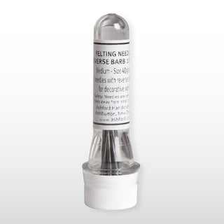 Reverse Barb 40 gauge: The barbs go the opposite direction which results in fibre being pulled out. This is useful to create a fluffy finish on well felted pieces