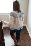 As autumn breezes give way to winter chills, woolen sweaters become a daily staple. This top-down sweater is sure to become a favorite pullover throughout the season. The neckline begins with a touch of frost as Fair Isle snowflakes begin below the collar and increase in both size and color intensity around the shoulders. Mini-skein gradients create an eye-catching colorwork effect, while waist and hip shaping create a flattering fit. Colorful detailing along the bottom of the sweater body and sleeves give this garment a unique look while making it interesting to knit. Cozy up to the fire and grab your needles… it’s time to get Frosted!