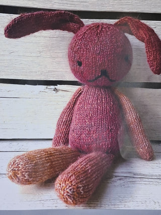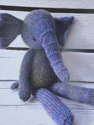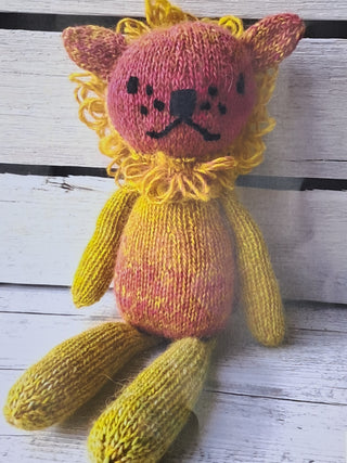 Rachel Rabbit, Larry Lion, Elsa Elephant, Ben Bear: Yarn, stuffing and pattern Knitted on 3.50mm needles . Knitted in 8 ply alpaca/merino blend. The multicoloured yarn is a feast for the eyes and ensures each version of the kit is a little different.