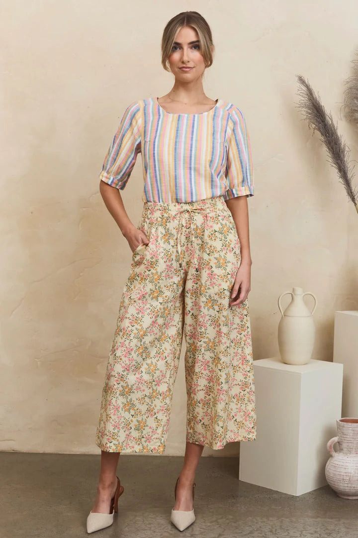 The Liv Trousers are the perfect blend of casual comfort and effortless style. With their relaxed 7/8 length and straight wide leg, these trousers are ideal for warmer days. The adjustable waist tie adds a playful touch while ensuring a comfortable, tailored fit for any occasion.