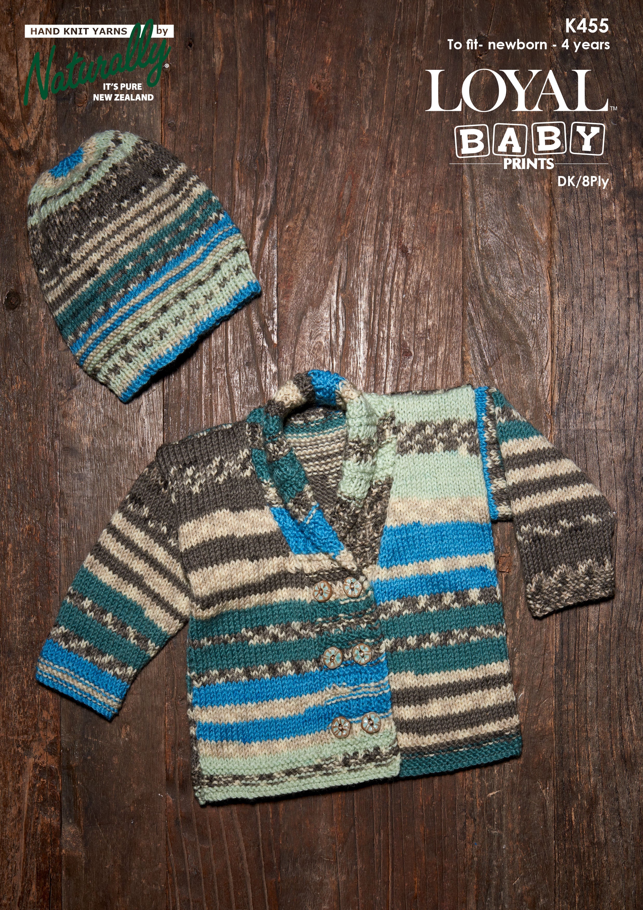 Pattern for Loyal baby Prints. They can also be used with other 8ply yarns, but we suggest you do a test swatch to ensure the tension is the same.