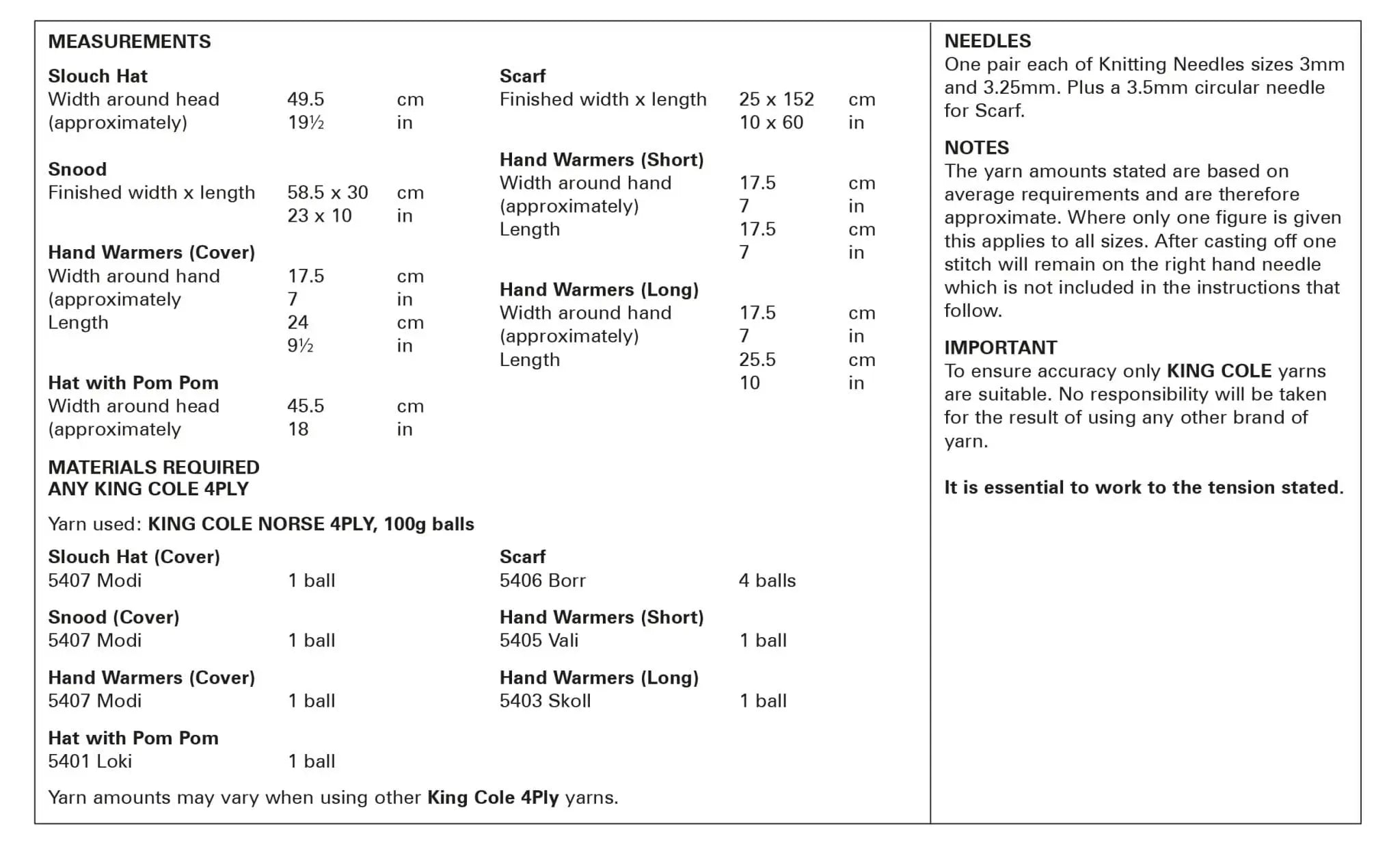 Versatile pattern with a Slouch Hat, Snood, Hand warmers (3 patterns), Hat with Pom Pom and a Scarf