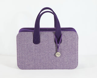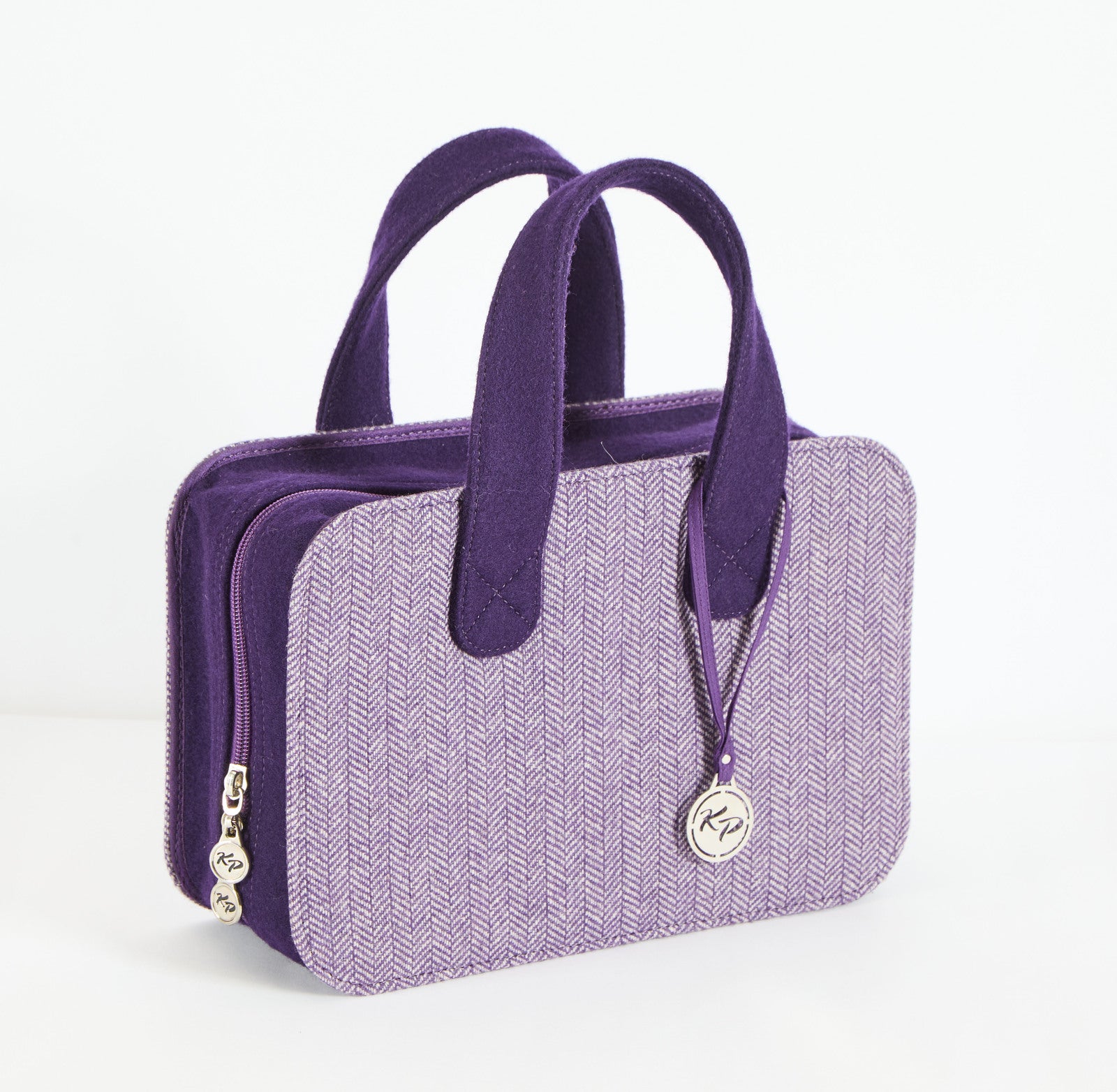 Constructed from purple wool tweed and dark purple felt, with double zippers for easy access to projects, the doctor bag comes in two convenient sizes: